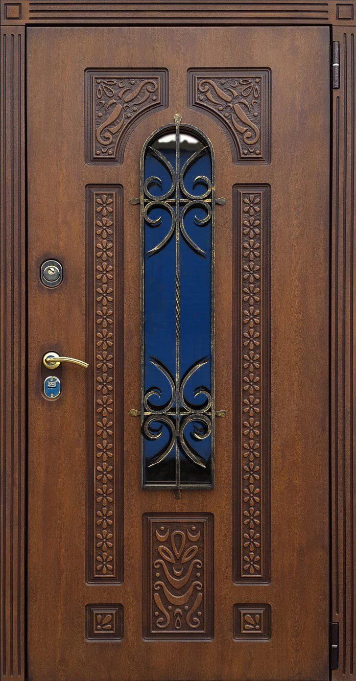 Прочная металлическая Дверь с витражами DZ635 по цене от 65 000 руб. под заказ в любой комплектации. Вы можете выбрать материал, замки, цилиндры и многое другое. Производим сами! Быстрая доставка и установка в Туапсе.
