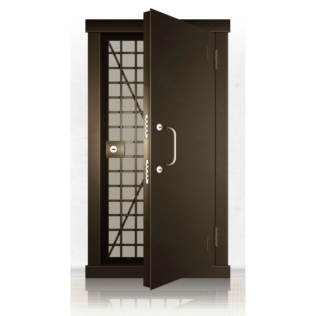 Металлические двери КХО и КХН представляют собой входные блоки, обладающие высоким уровнем взломостойкости и состоят из трех основных элементов: усиленного каркаса, сплошного металлического полотна и решетчатой двери. Дверной блок изготавливается из стального уголка 100*100 мм. Места крепления блока к стене цементируются и закрываются стальными наличниками шириной 40 мм. Крепеж заходит вглубь стены на 80 мм. В конструкции внешней створки монтируются ребра жесткости, для обшивки используется сталь толщиной не менее 3 мм. Внутренняя решетка изготавливается из прутка диаметром 16 мм. Размер ячеек решетки должен составлять не более 15 на 15 см. В точках пересечения прутья надежно приваривают друг к другу. В КХО и КХН необходимо поддерживать определенную температуру и влажность. Для этого внутреннее пространство глухой двери заполняется теплоизоляционным материалом, а по периметру двери приклеивается уплотнитель. Такие двери оборудуются замками с повышенным уровнем взломостойкости. Специализированные двери КХО и КХН в Балее могут быть оснащены сигнализацией, в конструкции могут быть проушины для навесного замка и элементами для опечатывания. Если идет речь о двери в комнату хранения оружия, в створке оборудуется окно для выдачи оружия и спец. средств, которое накрывается стальной дверцей.