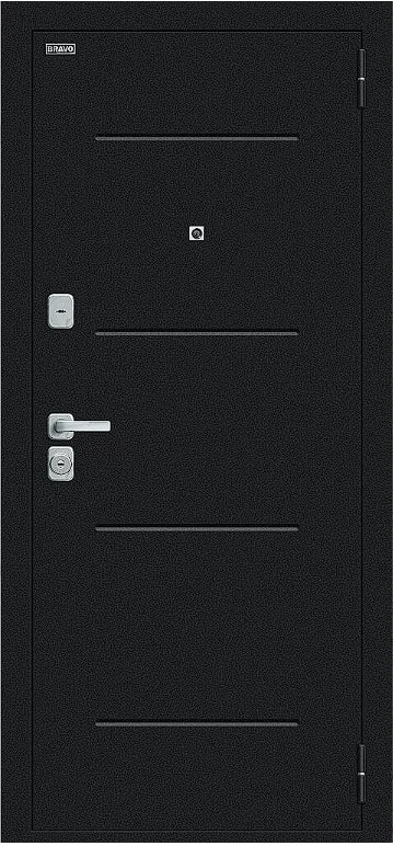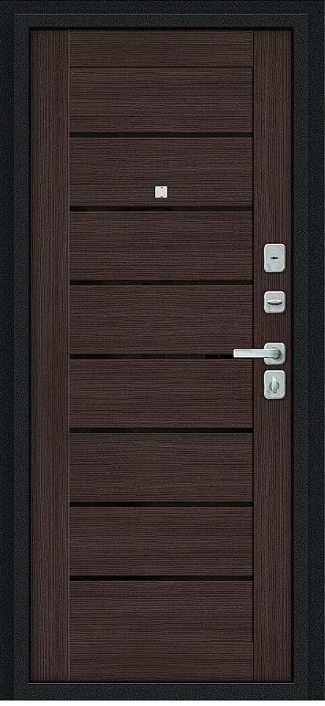 Надежная входная Дверь Браво Техно/BChrome Букле черное/Wenge Melinga премиум класса по цене 36 415 руб. Большая толщина стали защитит от проникновения в ваш дом, квартиру или коттедж. Используется очень качественная фурнитура: замки, цилиндры, ручки, защелки. Покрытие и отделка двери изготовлено под внимательным контролем производителя. Дверь имеет долгий срок службы и гарантию.