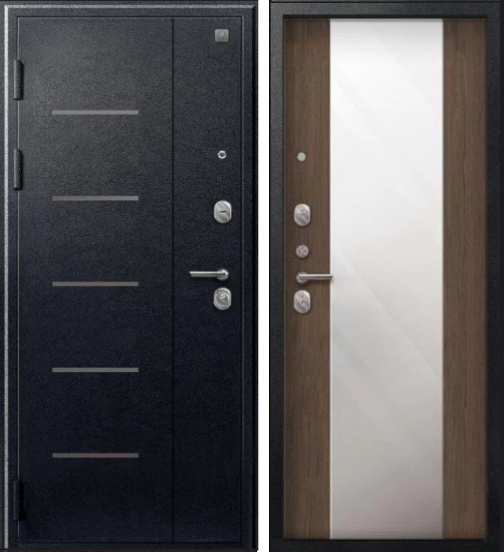 Надежная входная Дверь V-04 Черный муар - Миндаль Зеркало премиум класса по цене 46 615 руб. Большая толщина стали защитит от проникновения в ваш дом, квартиру или коттедж. Используется очень качественная фурнитура: замки, цилиндры, ручки, защелки. Покрытие и отделка двери изготовлено под внимательным контролем производителя. Дверь имеет долгий срок службы и гарантию.